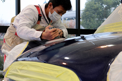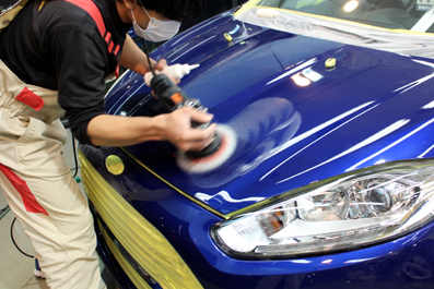 こちらのお車はフォード・フィエスタさん。ご登録されて間もないお車ですが、塗装面の下地から作業をスタートしています。新しいお車、もちろん新車ですが、塗装面には小キズがあり、磨きからの作業です^^近寄ってみると、けっこうな小キズですね^^;ボンネットだけでなく、ボディ全体に小キズって感じでしたーー^^;こんな感じで小キズを磨いて処理しています↓ 狭いところは、小さいポリッシャーに変えて磨き残しの無いように仕上げています^^ 下地も整い脱脂。これからクオーツガラスコーティングを施工です...