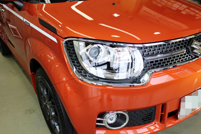 今日は初めてお目見えのスズキ・イグニスさんがご来店中です! 斬新なデザインですね〜^^ 小さいサイズですが、1200ccの普通車です! マイルドハイブリッドを搭載してリッター28km走っちゃうそうです^^ オレンジ色の鮮やかなボディをこれからガラスコーテイングしていきます! オレンジが深みを増してさらに鮮やかに! これがガラスコーテイングの独特な光沢です^^ リアから見たイグニスさん。 結構ワイドなリアフェンダー(クオーター)ですね〜^^ 「綺麗って気持ちい...