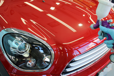 今日も素敵なお車が入庫しています^^真っ赤なBMW ミニ・クロスオーバーさんのクオーツガラスコーティングFXを施工中!赤いクロスオーバーさんは初めてですが、綺麗な色ですね〜^^下地を整え、スプレーガンを使ってベースとなるガラスコーテイングを塗装面から隅々まで施工していきます。スプレー工法なので、グリルの隅から隅までしっかりとコーテイングできます^^vヘッドライトも虫汚れなどから防汚性を高められます。ホイールコーティングは定番商品ですが、ボディコーティングの次に人気があります。ささっと水洗いす...