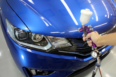 サファイヤのような鮮やかなブルーのホンダ・フィットさんがご来店いただいています。ご用命いただいたのはスプレー工法のクオーツガラスコーティングFX。コーテイングしていく段階で、ブルーがより深みを増して行くのが解ります^^細部まで得意なスプレー工法で、グリルの奥の奥までしっかりとコーテイング!定番のホイールコーテイングで、細かいスポークのお手入れも楽ちんです!普段はお手入れしないかもしれませんが、給油口の中とキャップも^^仕上げはボディラインと目線を合せて拭き上げ。キラキラしたフィットさんに...
