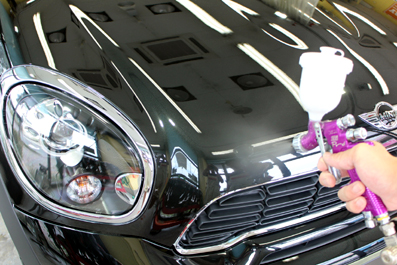 もうすぐ梅雨明け?そんなニュースが流れている甲府盆地。それにしても外は35℃近く、ムンムンとしています^^;今日のホットカンパニーには、ミニ3ドアハッチバックさんのクオーツガラスコーティングFXの施工に取り掛かっています!今回ご入庫のMNIさんはホワイト。ブラックのストライプが入っていて、コントラストが綺麗なお車ですね^^新車登録のお車ですが、コーテイングの密着を上げる目的と、光沢アップ、さらに見えない汚れも同時にクリーンアップしています。コーテイングはスプレーを使ってのガラスコーティング。隅々...