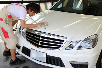 今日はメルセデス・ベンツE63さんのボディメンテナンス。2010年6月に施工ガラスコーティングを施工いただいて、早4年が経過していますが、あまり乗られていない様子^^ボディコンディションはとってもいい状態です。ガレージ保管ということもあってか、水滴ジミや下回りの汚れも少なく、メンテナンスというよりも、洗車仕上げ的な感じです^^オーナー様に月に何回乗られますか?と聞いてみると、1回か2回。ほとんどガレージに保管しっぱなしのようです^^それでもエンジンの調子を考えて、時々は回してあげるようですが^^;...