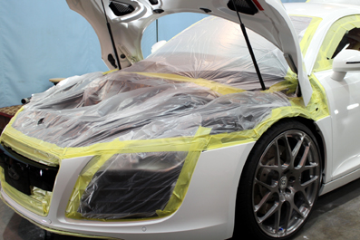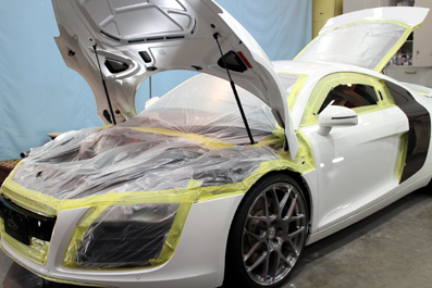 さて、今日は引き続きアウディR8さんのボディ磨きを行なっています。白いお車なので、小キズが画像では見えにくいのですが・・・・。照明のをあてると、細かいキズが見えます^^;小キズを見逃さないように、しっかりと塗装肌を見ながら研磨していきます。カメラの撮影の関係上、グレーっぽく見えますが、磨きあげたボンネット。かなりスッキリして、新車以上の肌まで作りこみ出来ました^^その他のパネルも塗装面とニラメッコしながら仕上げていきます!もうちょっとで磨きが仕上がります。その後は、コーティングです^^「...