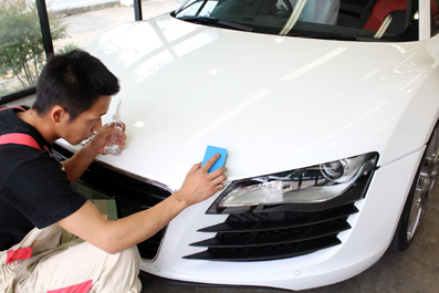 今日のホットカンパニーでは、アウディR8さんのボディ磨きを行なっています。いつもながら、大げさに見えるボディマスキング^^;でも、このマスキングで仕上がりの違いが出てきますので、手を抜く事はできません^^作業を進めながら、レンズのクモリを発見。オーナー様からは特に要望頂いてませんでしたが、気になったスタッフが磨き初めました。お手入れされていく中で、拭き傷が入ってしまたようで、表面に細かいキズが入って曇って見えます。レンズ用の研磨剤で磨きあげ、仕上がりの状態をチェックしながら、レンズコーテ...