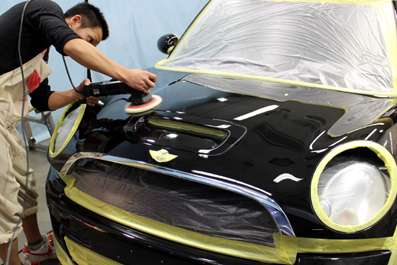 今日のお仕事はミニ・クラブマンさんのクオーツガラスコーティングFXの施工です!納車2ヶ月経過されているお車ですが、それなりに〜お手入れキズがチラホラ^^;もちろん、下地処理からスタートしています!新車が新車以上に輝く!それがホットカンパニーのお仕事ですもの^^v熟練のスタッフが塗装面の状態を見極めて、ポリッシャーとバフ、コンパウンドをチョイスして塗装面を整えていきます。磨きといっても、塗膜の硬さやキズの深さ、肌の質感など一台とて同じ状況のクルマはないので、経験がものをいう作業です^^ボディ...
