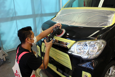 さて、ボディ磨きが終わったスバルR1さんのクオーツガラスコーティングの施工がスタートしました^^スプレーガンを使ってのガラスコーテイング。艶のあがり方も施工しながら確認出来るので、ワクワクしながらコーティングさせて頂いてます。この瞬間が楽しい時間でもありますね〜^^オーナー様のご要望で、各パーツも一緒にクオーツガラスコーティング。小さい部品でも何ら問題なく施工できちゃいます^^ヘッドライトリペアの最終チェック、ボディの仕上がりチェックを行なって完成!いい仕上がりにオーナー様のきっと喜んで...