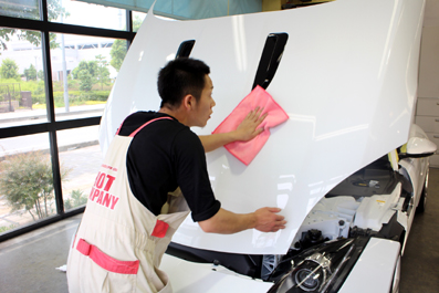 今日のお仕事は!ん?ボンネットの開き方が違うぞ?と、スタッフも少し驚きの様子?^^この6月に発売されたばかりのお車!あのメーカーから発表された新型!しかもスポーツカー!かっこ良すぎですね^^何と言っても、テールかの眺めは格別です^^カーフィルムとガラスコーティングをご依頼いただきまして作業を着実に進めております。もちろん新車ですが、さらに艶を上げるため、そしてガラスコーティングの定着をアップさせる為に下地はしっかりと整えていきますよ〜^^車名は次回のお仕事日記で^^「クルマが輝けば、人が...