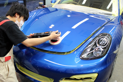 今日はポルシェ・ボクスターさんのボディ磨き中です。お車には細かい小キズと一緒に少し深めのスリ傷もありました^^;これらを一斉に磨きで目立たないように仕上げていく磨きを行なっています。ボディ形状や狭い場所、細かい部分は磨くツールと変えて行います。そうすることで、バランスよく塗装面が磨けるんです^^ここは綺麗だけれど、この隅っこはツヤがない・・・・。そんな風にならないように使うポリッシャーも用途にお応じて変更しています^^さ!綺麗に仕上がって来ました。明日はクオーツガラスコーティングに入り...
