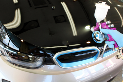 今日はBMWi3さんのシリカガラスコーティングFXの施工です。薄いゴールドとブラックのツートンカラーですが、やはり淡いブルーで縁取られたグリルやエンブレムは電気自動車の存在感を主張していますね^^見るからに近未来的な存在のi3さんですね。車内も拝見しましたが、こちらもスッキリ^^2つのモニターが付いているのと、ギアのシフトレバーが右側のウインカーより上のスイッチ。慣れないとちゅうちょしちゃいそうな感じです^^;側面は観音開きになるドア。開放的で乗り降りも楽ちんでしょうね。少し驚いたのは、タイヤの...