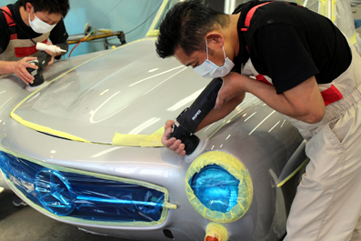今日のお客様は、とっても珍しい1950年代のメルセデス・ベンツ190SLさんがご来店下さいました^^鈑金塗装後の塗肌がどうしても気になるとの事。言わいる、塗り肌があまり綺麗でなく、とっても残念がっていました。 画像で見る限りでは、レストアされてすごくキレイなお車なのですが、景色の映り込みとなるとチョット違います。ゆず肌までは行ってませんが、塗装面が平らでなく小さな凸凹があるため、映り込みが今ひとつ。そこで、出来る限り平滑な塗装面にするため、サンディング処理を行い、そこから研磨して仕上げる方法を取り...