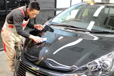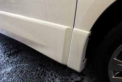 大雪にみまわれた影響でしようか?ボディコーティングのメンテナンスにご入庫のアルファードさんには「鉄粉」がいっぱい付着していました^^;ボディの側面に鉄粉除去剤を塗布しているのですが、わかりますか?鉄粉が溶剤に反応してムラサキ色になっています。塗装面に張り付いた鉄粉はそこでサビつき、塗装面に喰い込んでしまうんです。その為、洗車をしてもザラザラが取れず、一向にキレイにならなくなってしまいます^^;恐るべし「鉄粉」です。ホットカンパニーでボディコーテイングを施工いただいたお車は、このような洗...
