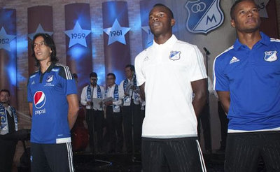 ミジョナリオスFCはAdidasとサプライヤー契約を結んだ。左胸には「Somos embajadores(我々は大使だ)」というスローガンが付けられた。 Colombia.com(コロンビア)より