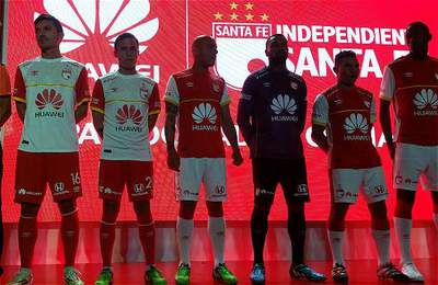 首都ボゴタに本拠地を置くインデペンディエンテ・サンタフェの2015年モデルを発表。Umbro社とサプライヤー契約し、新スポンサーに中国のファーウェイ(Huawei)社が加わった。 Futbolred.com(コロンビア)より