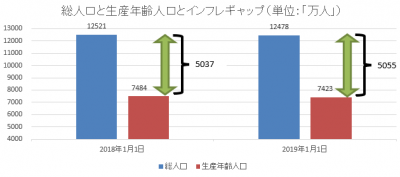 JUGEMテーマ:経済成長 JUGEMテーマ:デフレ・インフレ JUGEMテーマ:日本再生案を考えましょう^^ 今日は「少子高齢化は労働市場におけるインフレギャップ幅の拡大をもたらす」と題して論説します。 まずは日本経済新聞の記事をご紹介します。 『日本経済新聞 2019/07/10 17:00 人口減少幅最大の43万人、外国人は最多 人口動態調査 総務省が10日発表した住民基本台帳に基づく2019年1月1日時点の人口動態調査によると、日本人の人口は1億24...