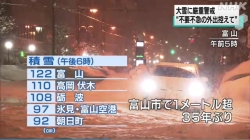 JUGEMテーマ:雪 「NHKオンライン」→「各地のニュース」→「富山」を選択→「もっと読む」 →「富山市など積雪1メートル超え 1月9日 13時52分」 2021.01.10(日)の他のニュース >>