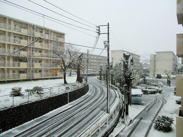 予報の通り、雪になりましたね… 暖冬とは言え、降る時は降る。 集会所前もこのように。 中庭も真っ白に。 15棟全景。 桜も雪とのコラボです。 桜と雪が一緒って、なかなかだね。 雪の重みで枝がしなってます… JUGEMテーマ:雪
