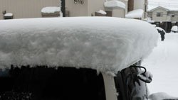 先週の金曜日に降った雪・・。始めは水分が多くてシャリシャリしてる感じで『あれ?そんなに積もりそうもないかも?』な〜んて少しホッとしていた私。(^m^)vなのに・・・いや〜おもいっきり裏切られましたよ。(=o=;)なに?この厚さ・・・嘘でしょ。(=_=;)結局、土曜日仕事だった彼はドラックのタイヤにチェーンを取り付け出動しようと試みましたが、全く道に出る事が出来ず、お休みとなりましたよっ・・。(^o^;)ちなみに、普段市内を走っているバスも運行中止になってたし・・無理に車を出そうとした人は結局車が途中でウントモスンと...