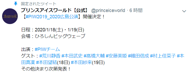 JUGEMテーマ:フィギュアスケート プリンス・アイス・ワールドが広島に来るっ!!\(^0^)/ ・・・これなら行けるんじゃね?オイラ! しかも大ちゃん出ますよ!! 昨日の番組を見て、大ちゃんぜひ見たいと思っていたんだよね(>▽<) もちろん進化したプリンスチームの演技も見たい! 上地ゆりかちゃんの応援もしたい!! よーし、前向きに検討しよう♪♪♪ もう西日本でのPIWの公演は、今シーズンはないかと思ってた。 ...
