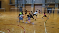 JUGEMテーマ:バドミントン 2015年9月19日(土) 今日からシルバーウィーク、5連休の人もいるでしょう。 少ないかなぁ〜 と思いきや そこそこ、そろっていました。 基本、土曜日は基礎練習に当てたいと思っています。 バスケットボールを使って、ドリブルせずボールリレーです。 速さを競うのではなく、できるだけ少ないパスでいけるかを競います。 できるだけ右手、右足を大きく前に出し 体をひねって渡します。 今日はみんな一生懸命練習をしてくれました。
