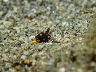 JUGEMテーマ:ダイビング 今、ダンゴウオやアユカワウミコチョウが人気者の城ケ島ですが昨日インターネットウミウシが岩骨に登場です。 インターネットウミウシが岩骨22Mに登場。 とっても分かりやすいところにいます。 BIGサイズの10cm☆ まっきー