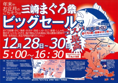 JUGEMテーマ:ダイビング 今年もやってきました三崎自慢のイベントがっ!! 『三崎まぐろ祭 ビックセール』 日時:12月28日(土)〜30日(月) 5:00〜16:30 皆、三崎のマグロをゲットしてくださいね!! マッキー