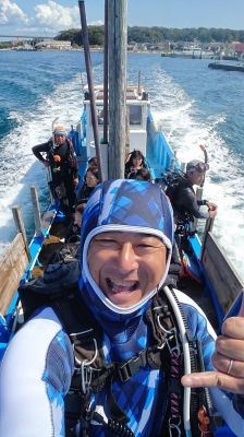JUGEMテーマ:美容室 JUGEMテーマ:ダイビング 9月15(日)から3連休をいただき、 沖縄へダイビングツアーへ行ってきました!! 熱帯低気圧の影響を受けて、 直前まで飛行機やボートが出航するかと色々とヒヤヒヤでした... 自称「晴れ男」の私の力が作用したのか、 あっついくらいの天気になってくれました♡ スイミーに見えませんか? はしゃぐ、てんちょー 店長と同行し...