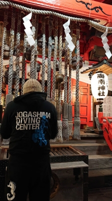 JUGEMテーマ:ダイビング ぐっとも〜も〜 朝焼けが毎日とっても綺麗で気持ちがいいですね。 最福寺で除夜の鐘をついてから三崎の海南神社へ 海での安全を祈願 今年から始まった鮪占い。 小さな竿で目をつけたマグロを釣りますw 船の乗り初めで船霊(ふねだま)様にお神酒を。 城ヶ島の海南神社の方向へ船首を向け海の安全を祈願しました。 森脇君アクシーチ...