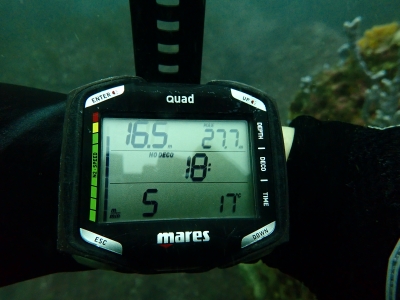 JUGEMテーマ:ダイビング 今日は楽しいので皆で3本ボート行ってきました。 3本目エントリーしたらお水が冷た〜〜〜〜〜いっ!!!!! うっそ〜んっ!! 17℃って 明日はみんなドライがいいんじゃないの〜〜〜 岩骨17℃ 透明度10〜15M 久し振りの綺麗な潮が入ったので思わず29Mのバル...