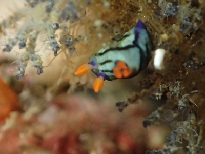JUGEMテーマ:ダイビング こんにちは、山ちゃんです。 今日は、ボートで岩骨へ2本行って来ました 風は無く海は鏡のようなベタ凪 天気も良く気温も高く最高のコンディション 水中は、水深10mまでの透明度が下がってしまいましたが それより深くはまだまだ水は青く透明度がよい状態です そして最近は、岩骨の高の壁にはリュウグ系のウミウシが増えています クロスジリュウグウミウシ ...