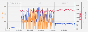 先日の、舞洲トライアスロン大会の心拍データです。 久々にショートのデータを取りました。出るのも久々でした。 最大心拍数177は自分でも驚きです。結構追い込めました。 秘密のトレーニングが効いたようです。 20代の頃の心拍数値ですね。 バイクの上げ下げは、アップダウン、Uターンが多いので、こんな感じになります。 こういうコースは、心臓の鼓動、乳酸除去がいかに素早く反応してくれるかがポイントですね。 バイクでセーブしたので、ランではうまくまとめることができました。 あとは、...