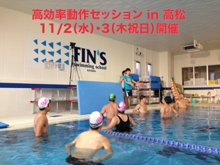 いよいよ今週開催です。 ぜひお越し下さい! スイムはかなり遅めのスタートです。 ★高効率動作スイムセッション 期日:11月2日(水) 21:00〜22:30 料金:FIN'Sトライアスロンコース会員無料 (対象コース) 他会員外 2160円、当日スタッフにお支払いください 指導:西内洋行(シドニー、アテネオリンピック代表) 持ち物:水泳の用意(プールで泳ぎます) 場所:FIN'Sスイミングスクール栗林 香川県高松市藤塚町3-12-8 内容:初級から上級まで対応。水泳の基...