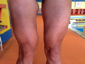 今の少ない練習量で大会に出ていると、よく周りから言われます。「西内さんは元があるから…」いや、元は無いですよ。むしろマイナスからスタートしています。この写真、私の脚です。右脚いびつですよね?これ、腫れてる訳ではありません。今から20年前くらいの交通事故で車に轢かれ、筋肉を断裂させた後遺症です。内転筋の一部が切れて膝にくっついていないので、このように力を入れると盛り上がります。また、左の膝上の筋肉も無いですよね?これもこの事故で内側広筋も切れているままだからです。膝がパックリ割れて、中からこぶしく...