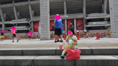 パパが。先日、日産スタジアムで行われたビギナーズトライアスロンに出場したので応援に行ったよ。一般の部(18才以上)スイム150m バイク10km (1km×10周)ラン4.5km (1.5km×3周)スイムはすぐ終わってしまうのでバイクから応援。毎回目の前を通過するたび「パパー、頑張ってー!パパー!」と大声援を送る娘に初めての挑戦で勝手知らずなのか、はたまた余裕があるのか?いちいち手を挙げ、「はーい!」と応えるパパ。最後のランなんて相当疲れているだろうに毎度見事に応えるパパ。そして無事ゴール!!!!!!パパ頑張りました^^あ...