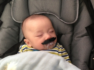 今日は、息子セナのちょうど100日目。 皆でお食い初めをした。 最近は、レストランでもお食い初め膳があるため、そちらを利用した。 ぐっすり寝ていたセナを連れて、和食レストランへ。 お膳が出て来ても寝ている... 説明書も何も無いので、よく分からない。 真ん中の白いの、お餅かな?と思ったら、神社の石らしい。 歯を硬くするために、ここに箸を付けて歯茎に持っていくと、丈夫な歯になるそうだ。 携帯でいろいろ調べて、箸をつける順序など調べながら行う。 男の子はおじいちゃんに...