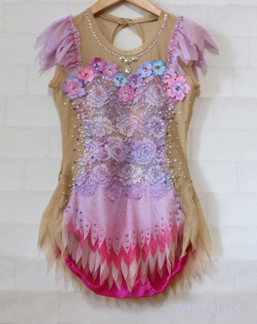 JUGEMテーマ:新体操 受注生産レオタード ラベンダーレースのレオタード150サイズを作成いたしました。 ストレッチレースにグラデーションペイントした生地をベースにラベンダーとピンク系のお花とスカートで華やかなレオタードを作りました。 スカートはサイド部分は肌色でスタイル抜群効果アップです!(^^)!