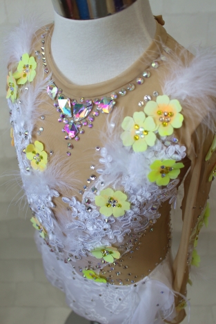 オーダーで白いレオタードのご注文をいただきました。 黄色のお花と羽を使ったレオタードです。 レースモチーフも使い華やかで豪華に仕上げました。 ありがとうございました<m(__)m>