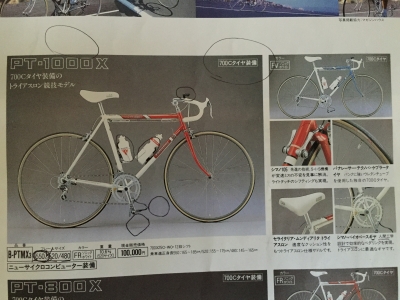 JUGEMテーマ:自転車 少し時間がたったが このあいだの つづき・・・・ ドロップハンドルなんて 触ったことが なかったにもかかわらず ロードレーサー それも オーダー車 <当時のカタログ> 当時(1988年)としては それなりの価格 給料は上がるいっぽう 見えないところで バブルが進行していた時代性が 高価な ロードレーサーを 買わせたようだ 手に入れた ロードレーサー トライアスロンモデル これも 時代性かな!? トライアスロンは おろか レースに出る事も...