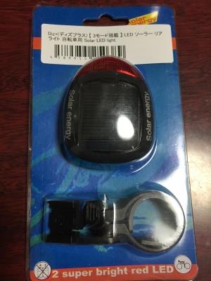 JUGEMテーマ:自転車 ロード・レーサーの リアライトを 探していたら こんなの 見つけちゃいました ソーラーで 460円!!! 激安!!! アマゾンで 見つけました!! アモルファスシリコン製のソーラーユニット搭載 高温時でも 発電量が低下しにくく 光吸収率が高いらしい ライトの裏側のボタンで 3つのモード 3連続点滅⇒点滅⇒転倒の 3モード切替 本体サイズ 長さ68mm 幅55mm 厚み26mm ブラケット装着時 長さ115mm 幅55mm 厚み42mm 本体重量...