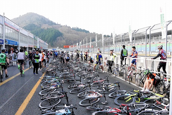 4時間エンデューロを待つロードバイクの長蛇の列。 と、言う訳で4月16日に岡山国際サーキットで行われたエンデューロ(耐久)レース、「晴れの国おかやま7時間エンデューロ」に参加してまいりました。 前日はこの時期にしてみれば珍しい?くらいの大雨だったのに、この日は朝から晴天も晴天で絶好のイベント日和だったのですが…。 当日は朝5:30に開門。 事前の通知でピット(ロードバイクの整備場所兼休憩所)の番号は決められていたのですが、ピットの中の席取りまでは決まってないんです。 自...