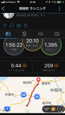 JUGEMテーマ:ジョギング おはようございます 本日は選挙の投票に行ったあと ロング走をしました。 先週は260mの峠走だったんですが 今週は+100mの380mくらいの登りと下りを 走りました。 さすがに今回は疲れました...。