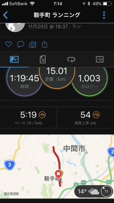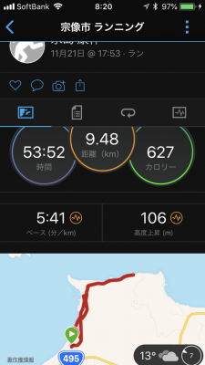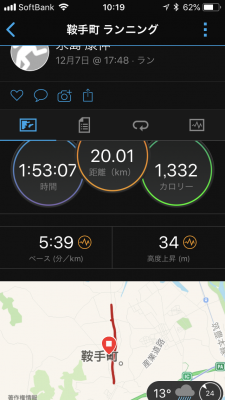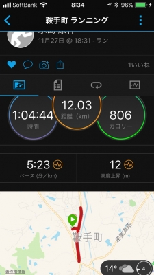 JUGEMテーマ:ジョギング おはようございます。 寒くなってきましたね〜 ジョギングには少しつらい季節になってきました。 消防団の後輩にマラソンを走る子がいたので 冬場のジョギングのアドバイスをいただいたので ニット帽に手袋は山登り用を使用して走っています。 (ニット帽は以前スキーに行っていたときに購入したもの) 走り始めは少し寒いですが 意外と快適ですね。 とりあえずいつもの往復コースを20kmと多めに走ってきました。 2時間走と考えていたのですが後半に力の...
