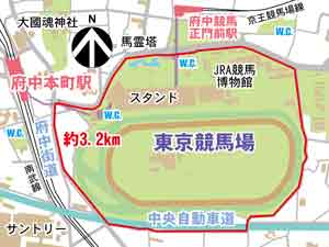 JUGEMテーマ:ジョギング 広い土地の施設はジョギングコース開拓のチャンス! という事で今回考えたのは府中市の東京競馬場。 「右に見える競馬場」です。 日本ダービーや天皇賞と多くの重賞レースが行われる大きな競馬場だ。 最寄りのJRや京王線の駅から専用の歩道橋で結ばれ、公園やフードコート等も充実した馬のテーマパーク。 さながら東京ダービーランド(TDL)といったところか。 (東京ダービーは大井競馬場だけど…) そんな大きな競馬場 ぐるっと周辺のロー...