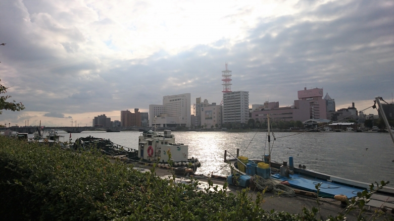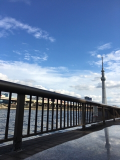 秋分の日は快晴。日向は暑いくらいです。 痛かった足の具合がかなり良くなって、走ってお出かけすることにしました。 隅田川へ連れて行ってもらったよ(^^♪ すこ〜し気持ちの良い風も吹いて、秋のにおいがした。 どの風景もお空が広くて大きな声を出したくなるよう。 いつかお花見をした汐入公園。 --お花見時期の汐入公園のヨウコウ桜-- ヨウコウ桜の花は密集してボールのようにモコモコとかわいい感じだったんだけど、 今は葉っぱがわんさか。 ヨウコウ桜の葉っぱが青々として、青空...