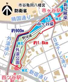 JUGEMテーマ:ジョギング お江戸ぶらりなジョギング。 外濠シリーズ(?)第二弾! 「市ヶ谷濠」編です。 詳細データは以下のリンクから。 ( RUNTOP → 東京23区 千代田区) ここではコース画像を紹介。 以前「四谷濠」と「弁慶濠」を記事にしましたが、 地理的にはその北、四ツ谷駅と市ヶ谷駅間を本日は紹介します。 外濠周回は信号が少ないのが良いトコロ。 今回のコースは「0」です。 専用コースは無いので好きな場所から。 ...