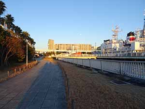 JUGEMテーマ:ジョギング お台場ランニングコースのコース画像紹介、後編です。 →前編 (詳細レポート RUNTOP → 23区広域)※別サイト 潮風公園の南側へ行って、5kmコースの折り返しまで紹介しましたので、その続き。 公園の先を進むと左に折れて「船の科学館」へ。 屋外展示の南極観測船「宗谷」などを見ることができます。 帆船の「海王丸」が停泊していることも。 宗谷がある埠頭?をぐるっと回りながら羊蹄丸のスクリュープロペラの展示を見る。 この辺でだいたい4km。 コッチ側...