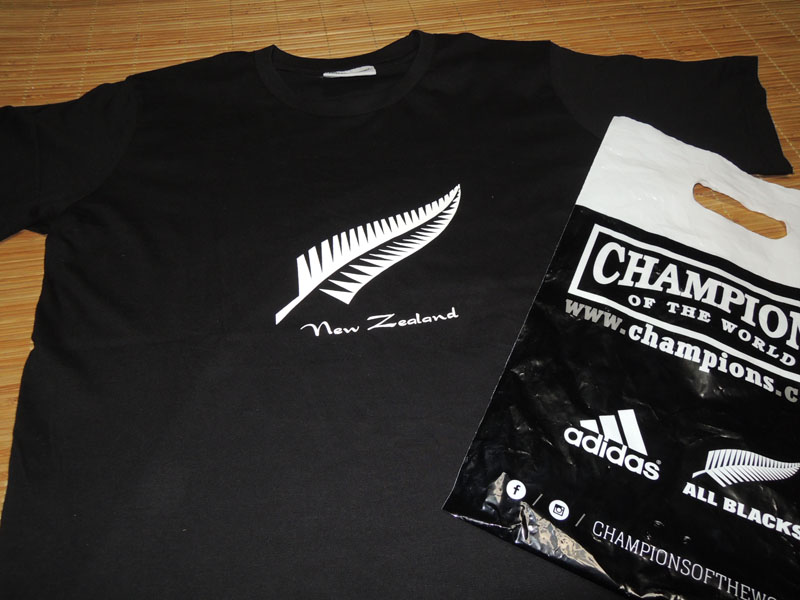 JUGEMテーマ:ラグビー 甥っ子ちゃんがお正月にニュージーランドへ行って来たらしく、お土産を僕にもくれました。 ニュージーランドと言えばラグビー代表チーム、通称オールブラックスです。 このマーク、羽ではありません。ニュージーランド固有のシダ植物のシルバーファーンの葉です。 ん??このTシャツのマーク、ちょっと違う( ゚∀ ゚) 右下の袋のロゴが本当です。 やるなぁ〜ギリギリセーフのパチモンやん(笑) 「ALL BLACKS」も文字商標でおさえられてるはずやから、万人が使っていい単語、...