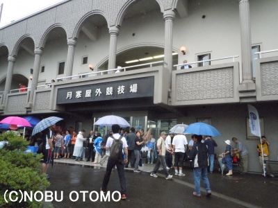 【対抗戦@江戸川】 30日は台風接近の中、江戸川区陸上競技場で関東大学ラグビー対抗戦グループの取材へ。 第1試合の慶大−筑波の間は何とか雨も降らず、嵐の前の静けさといった感じ。 試合は慶大が前半、28−7とリード。 後半は筑波大が反撃しましたが、慶大が35−24で逃げ切りました。 慶大のSO古田主将は、12度のゴールキックをすべて成功した初戦の日体大戦に続き、この日は5度のコンバージョンをすべて成功。 開幕から17連続キック成功です。 ところが、第2試合が始まる前に、バタバタッと...