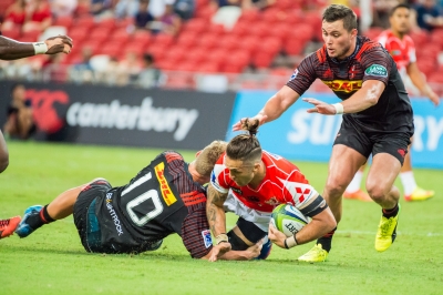 【サンウルブズ、逆転負け…】 25日、サンウルブズ、第5戦、vsストーマーズ@シンガポール 今回は残留で、Jスポーツにて応援観戦しました。 前半、サンウルブズはCTBカーペンター選手、WTB江見翔太選手、LOモリ選手がトライを重ね、24−10と大きくリード。 2トライをあげたカーペンター選手。(C)Singapore Sports Hub 江見選手の豪快なダイビングトライ!(C)Singapore Sports Hub モリ選手のトライもみごとなサポートでした!(C)Singapore Sports Hub その後、ストー...