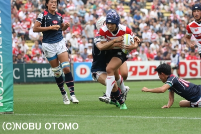 【サクラセブンズ、全敗…】 今季の女子セブンズワールドシリーズ最終戦、フランス・クレルモンフェラン大会は最終日の第2日。 サクラセブンズこと女子日本代表は、ボウル準決勝でアイルランドと対戦し、0−33で大敗。 最後は11/12位決定戦でケニアと対戦し、これも5−12で敗れてしまいました。 2日目は2試合でこの山中選手の1トライのみ。 サクラセブンズはこの大会1勝もできずに終了しました。 残念ですが…これはひょっとして、リオを睨んでの布石だったりして? 考えにくいことですが...