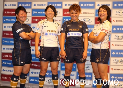 【パールズ発進!】 17日は日本橋にある三重県のアンテナショップ「三重テラス」へ。 三重県を拠点に設立された女子ラグビーチーム「パールズ」の設立会見へ行ってきました。 キャプテンは名古屋レディースから移籍の三重県桑名市出身、伊藤絵美選手、バイスキャプテンとして同じく名古屋レディースから移籍の三重県鳥羽市出身・山本さやか選手、追手門大学VENUSから移籍の大島千佳選手、そして世田谷レディースから移籍の林明里選手が出席しました。 (左から山本さやか選手、伊藤絵美選手、大島千佳選手、林明里選手。面白い顔...